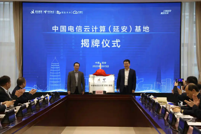 簽約儀式上,市委常委、副市長劉曉軍和電信陜西分公司總經(jīng)理葉利生代表雙方為中國電信云計算(延安)基地揭牌。